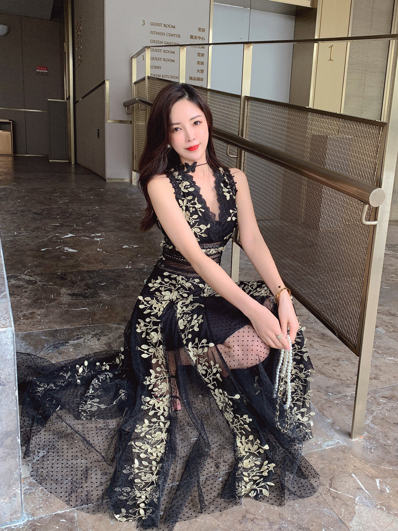 Mesh Embroidered Waistband White Dress